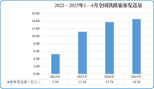 图1 2022—2025年1—4月全国铁路旅客发送量